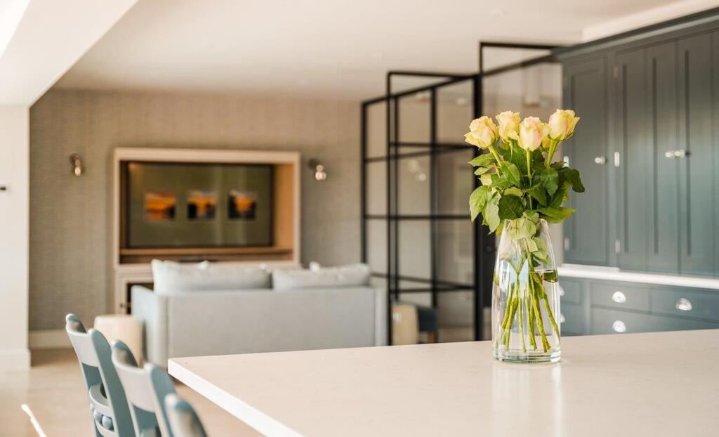 The property boasts a substantial vaulted Entrance Hall which leads through to an outstanding Kitchen fitted by Neptune. The Kitchen opens on to the Dining/Family area, which benefits from full height glazing and sliding doors opening out onto the south facing rear garden. Leading off of the Kitchen is a good sized Utility Area and to the other side is a separate formal Lounge with views to the rear, a ground floor Study and Cloakroom are also accessed from the Entrance Hall area.