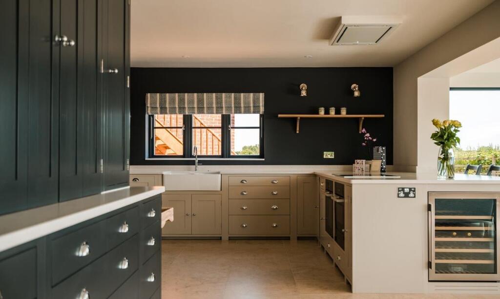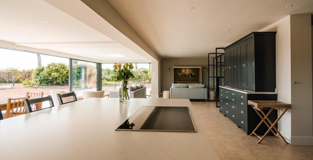 The property boasts a substantial vaulted Entrance Hall which leads through to an outstanding Kitchen fitted by Neptune. The Kitchen opens on to the Dining/Family area, which benefits from full height glazing and sliding doors opening out onto the south facing rear garden. Leading off of the Kitchen is a good sized Utility Area and to the other side is a separate formal Lounge with views to the rear, a ground floor Study and Cloakroom are also accessed from the Entrance Hall area.